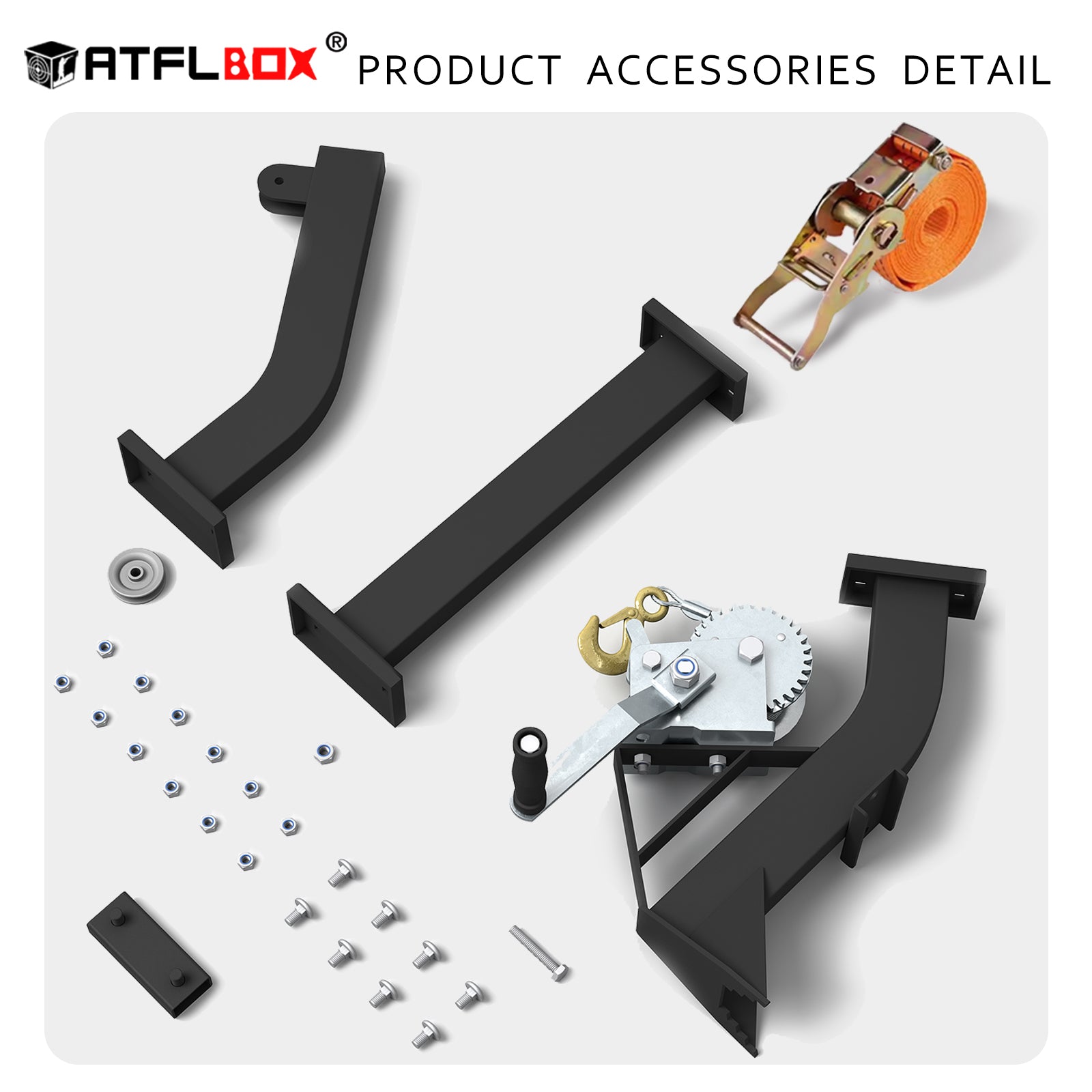 - Stable and Reliable Design: The ATFLBOX game hoist features an adjustable wide ratchet strap that offers superior grip and prevents loosening, providing greater flexibility and a more secure hold than traditional chains. Simply slide the strap into the bracket slot, secure it to the tree, and lock it in place to ensure stable and reliable performance during outdoor activities. This design enhances safety and efficiency when handling heavy game in the field.