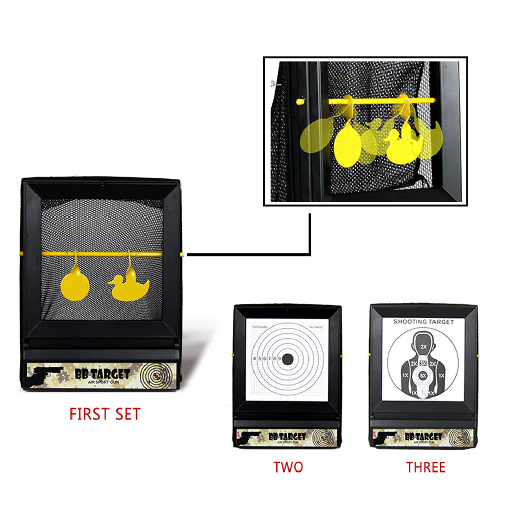 - Insert paper targets for shooting practice in the front, and the net at the back collects all the bb's so you can re-use them. At the same time, it could keep your bedroom or garden BB free and clean.