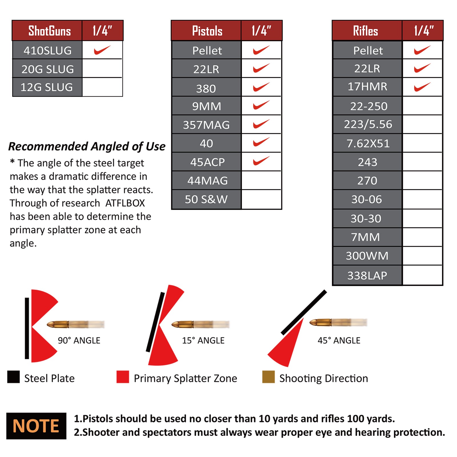 • AR500 STEEL TARGET: The laser-cut 3/8 inch thick steel target is designed for outdoor shooting and range shooting. The steel plate is powder-coated for durability. The brightly colored steel plate allows you to see clearly at the shooting range.