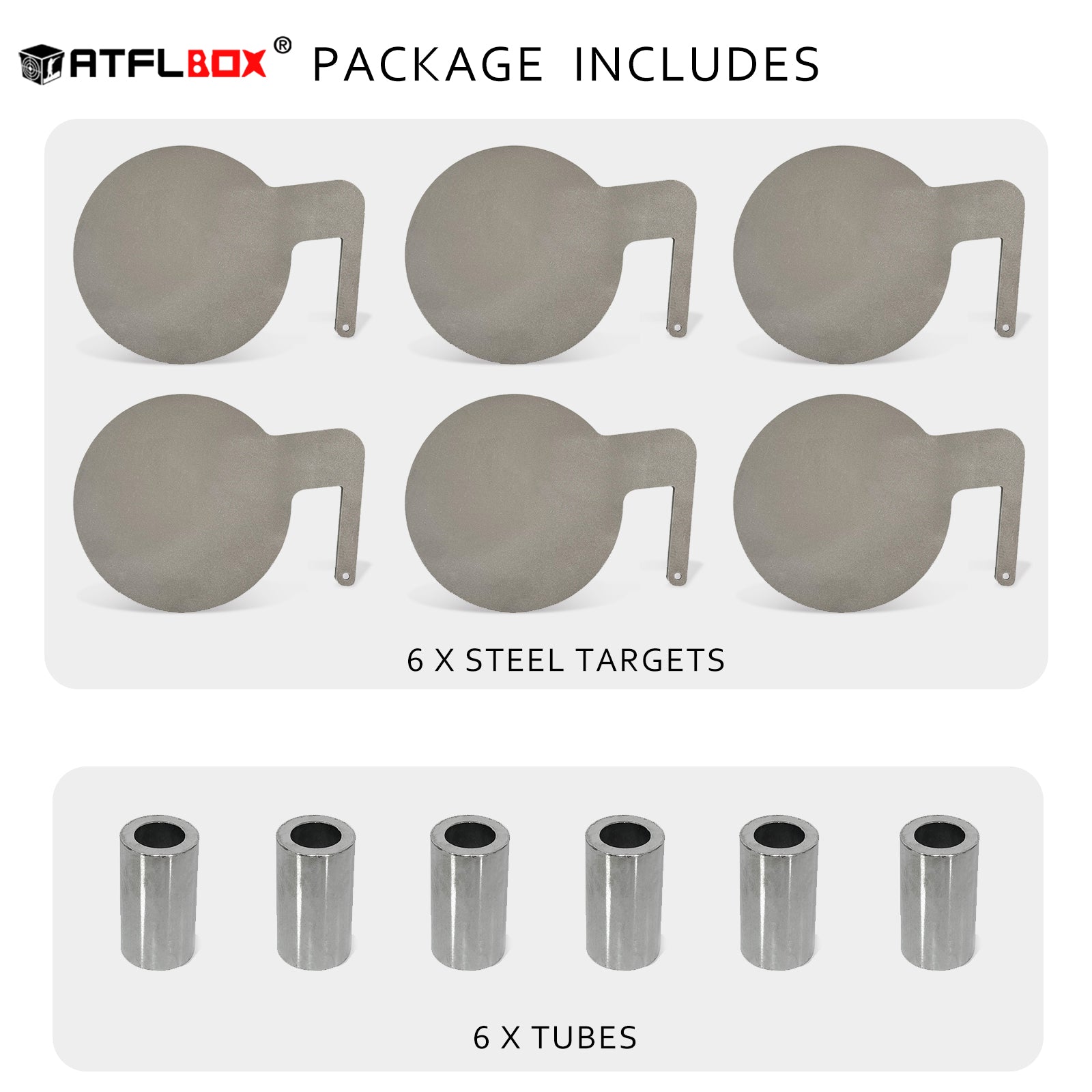 - Target Characteristics: The set includes six 6 inch diameter AR500 target paddles and six tubes for DIY dueling tree targets.