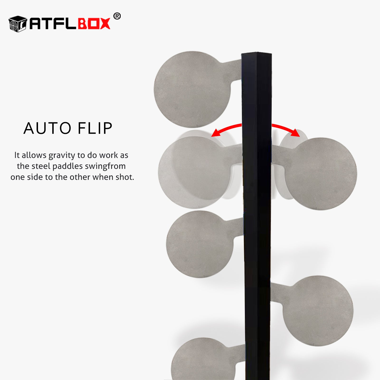 - Auto Reset: It allows gravity to do work as the six reactive armor steel paddles swing from side to side while firing. Because the goal is gravity reset and doesn't rely on springs or mechanisms. You can shoot again without resetting manually.