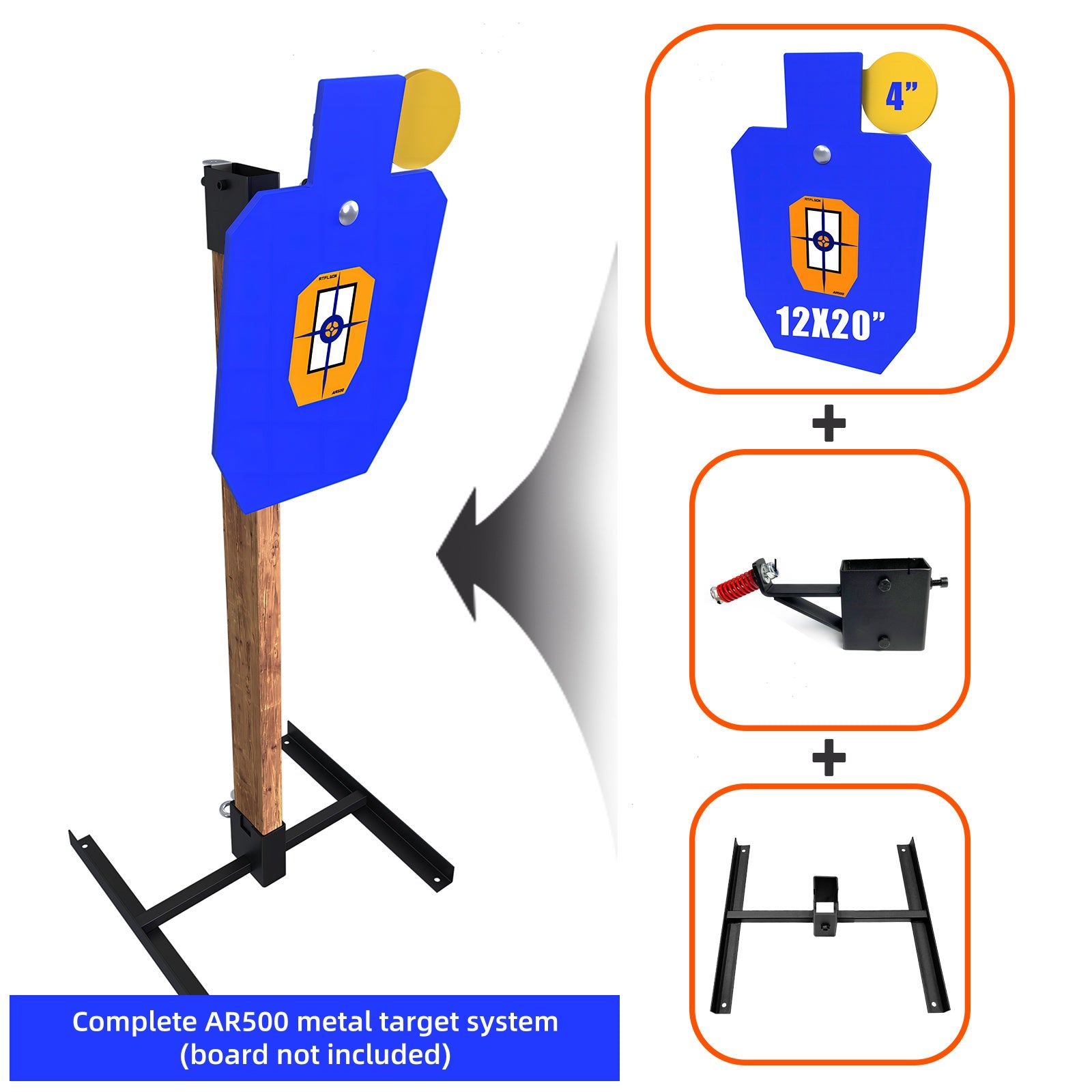 - GREAT COMBINATION: Package Includes one 3/8 inch AR500 12" x 20" hostage target with 4" top swivel paddle, 2x4 metal target hanger, and target stand base with four ground spike. (2x4 board are not included).