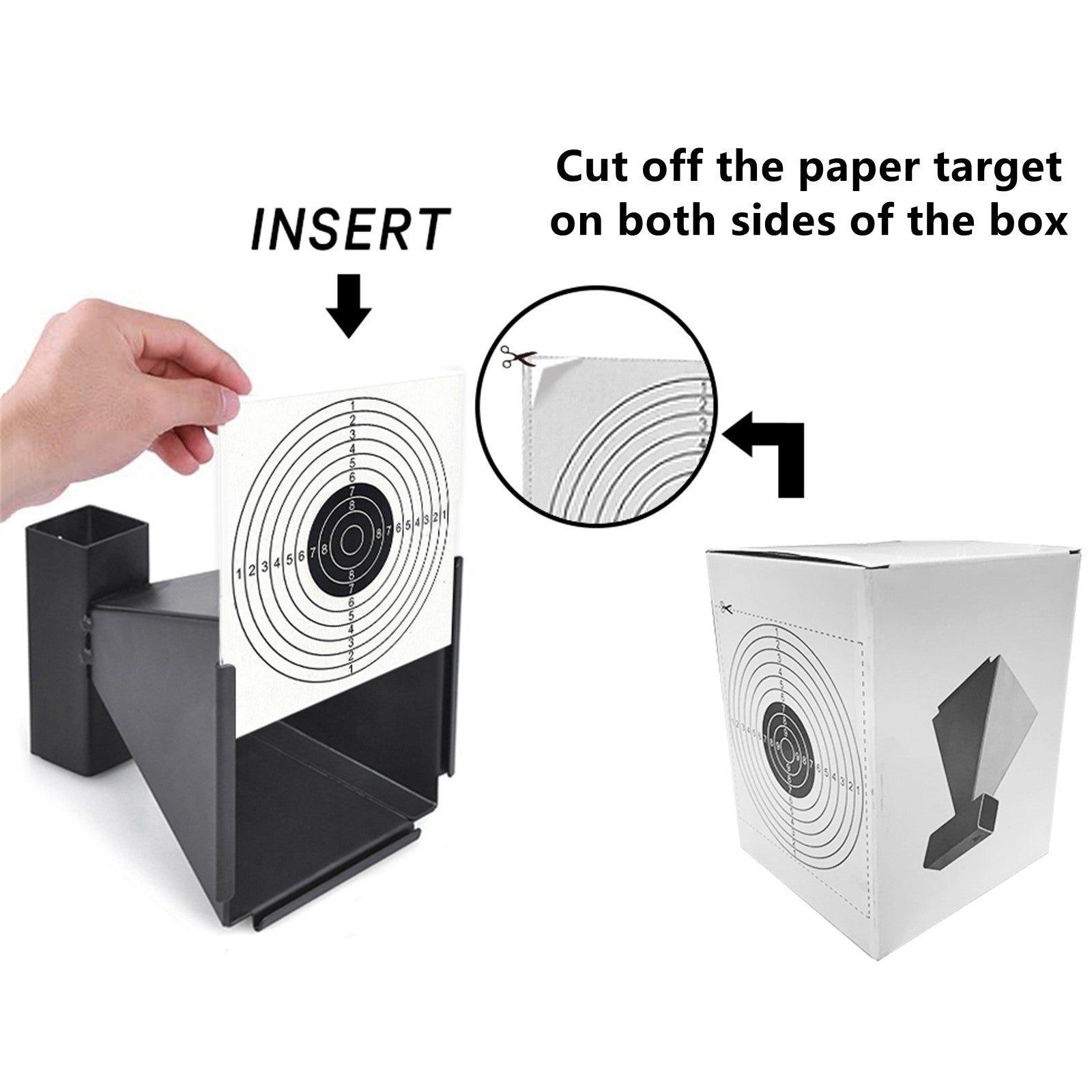 - Features: This airsoft target trap is suitable for BB guns, air guns, pistols, pellet rifles, outdoor or indoor. We have done more with the packaging. Both sides of the outer box can be cut into target paper.