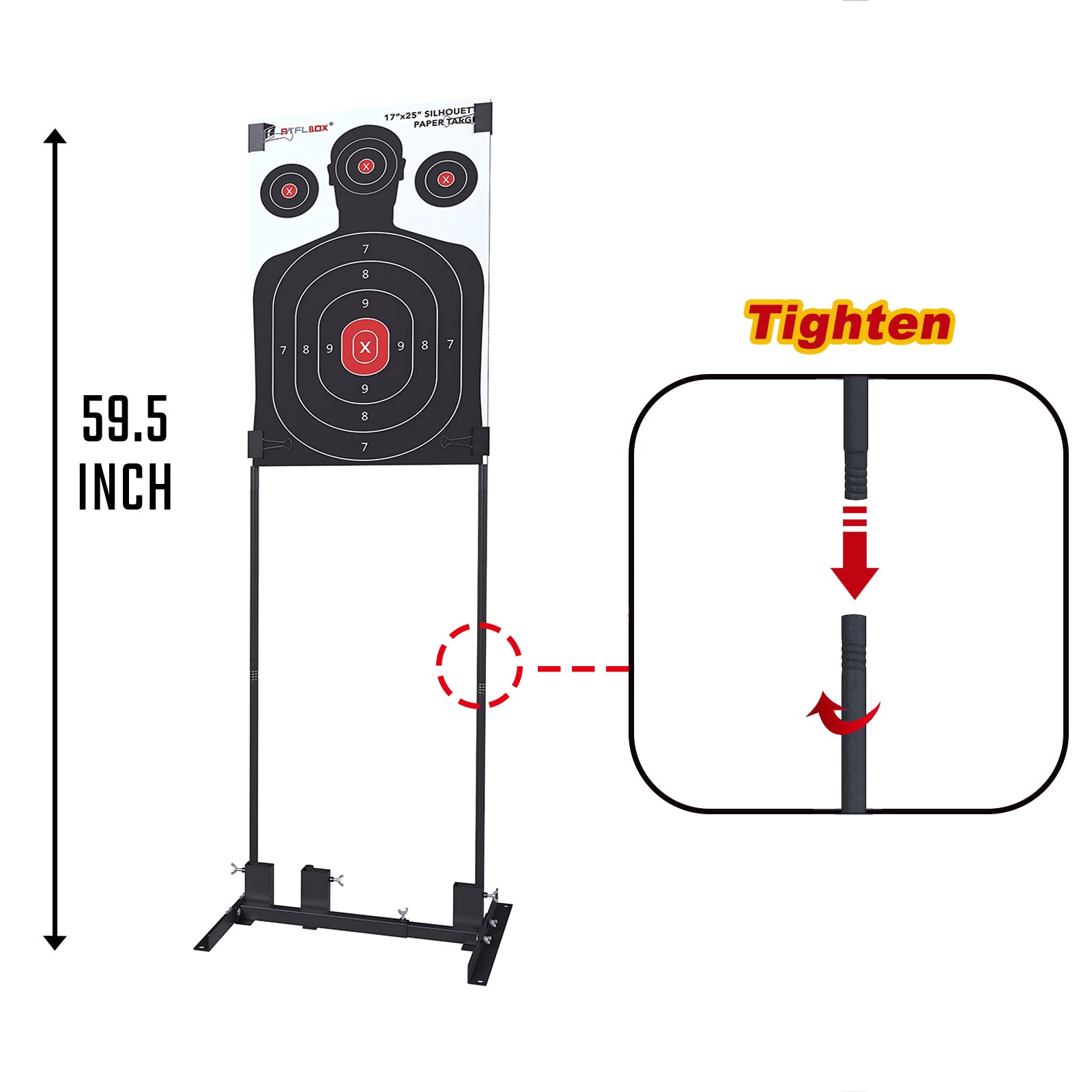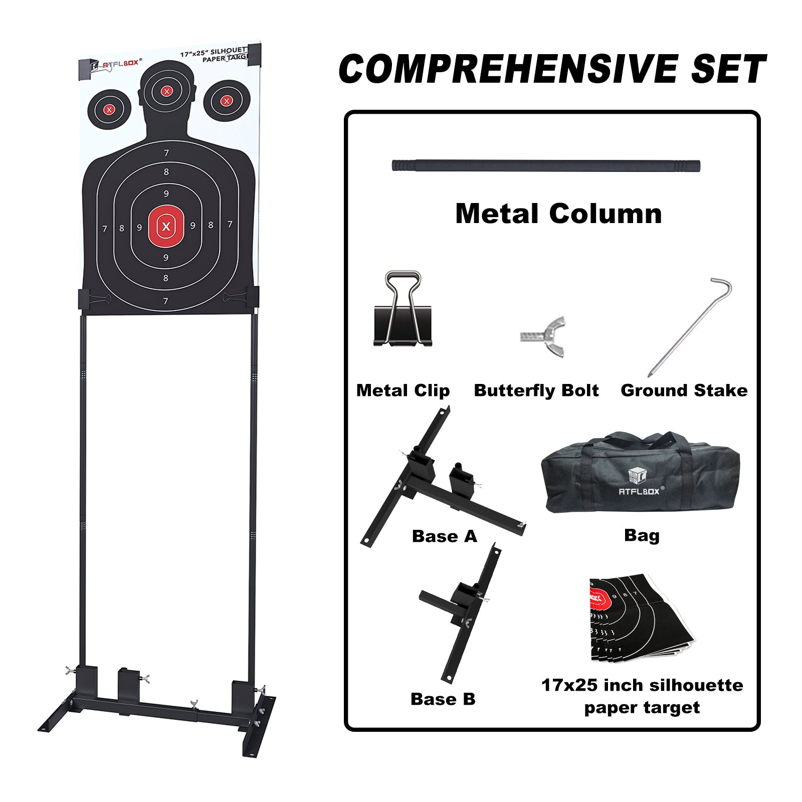 ATFLBOX Shooting Target Stand with 10pcs 17x25 Inch Paper Targets, Durable Paper Target Holder with Stable Adjustable Base for Cardboard Silhouette, H Shape, USPSA/IPSC, IDPA Practice
