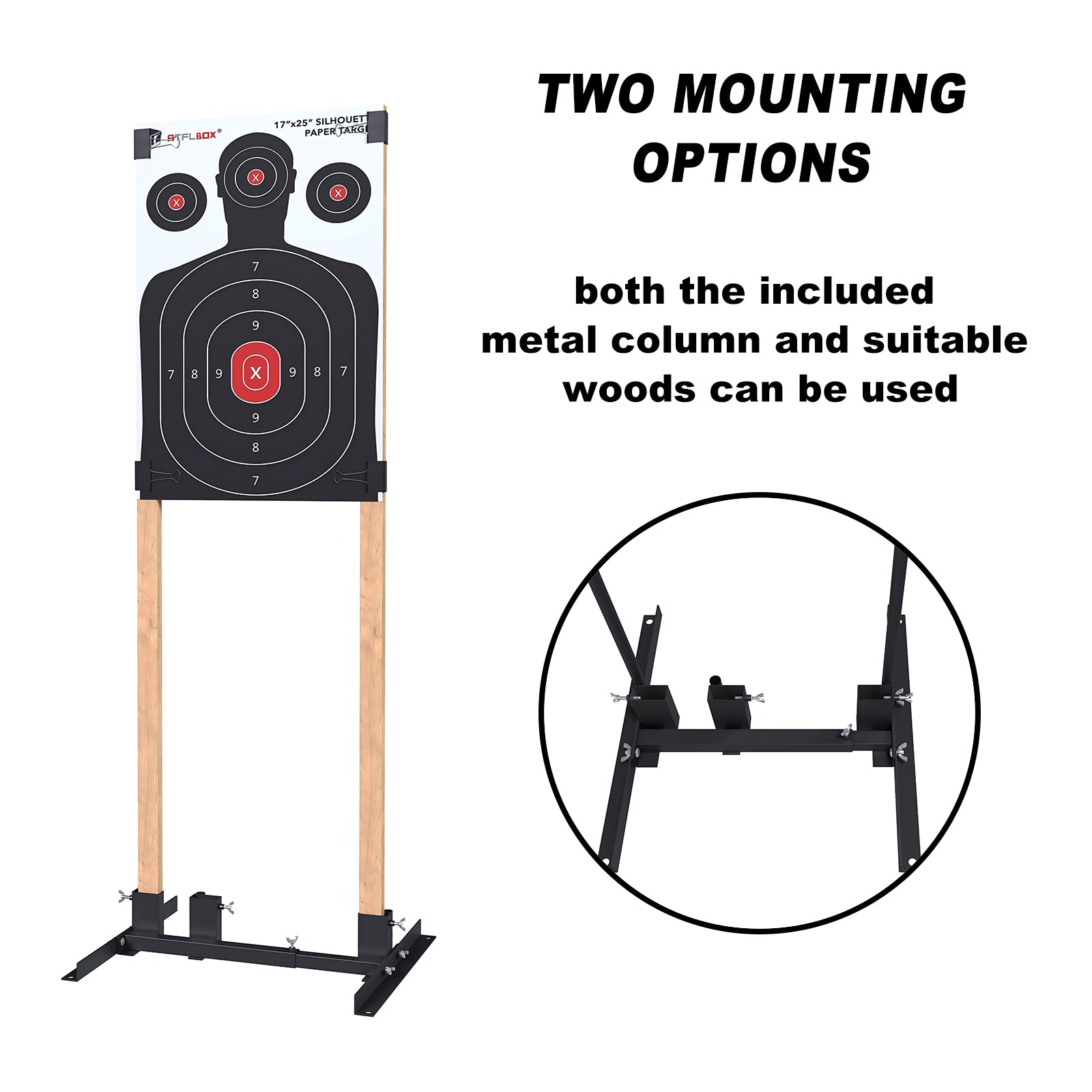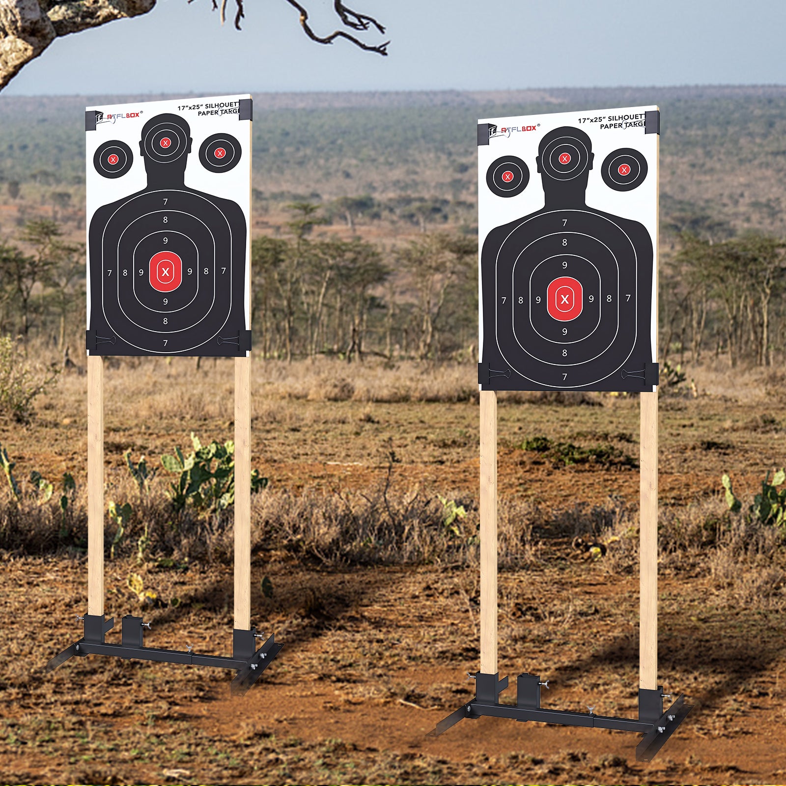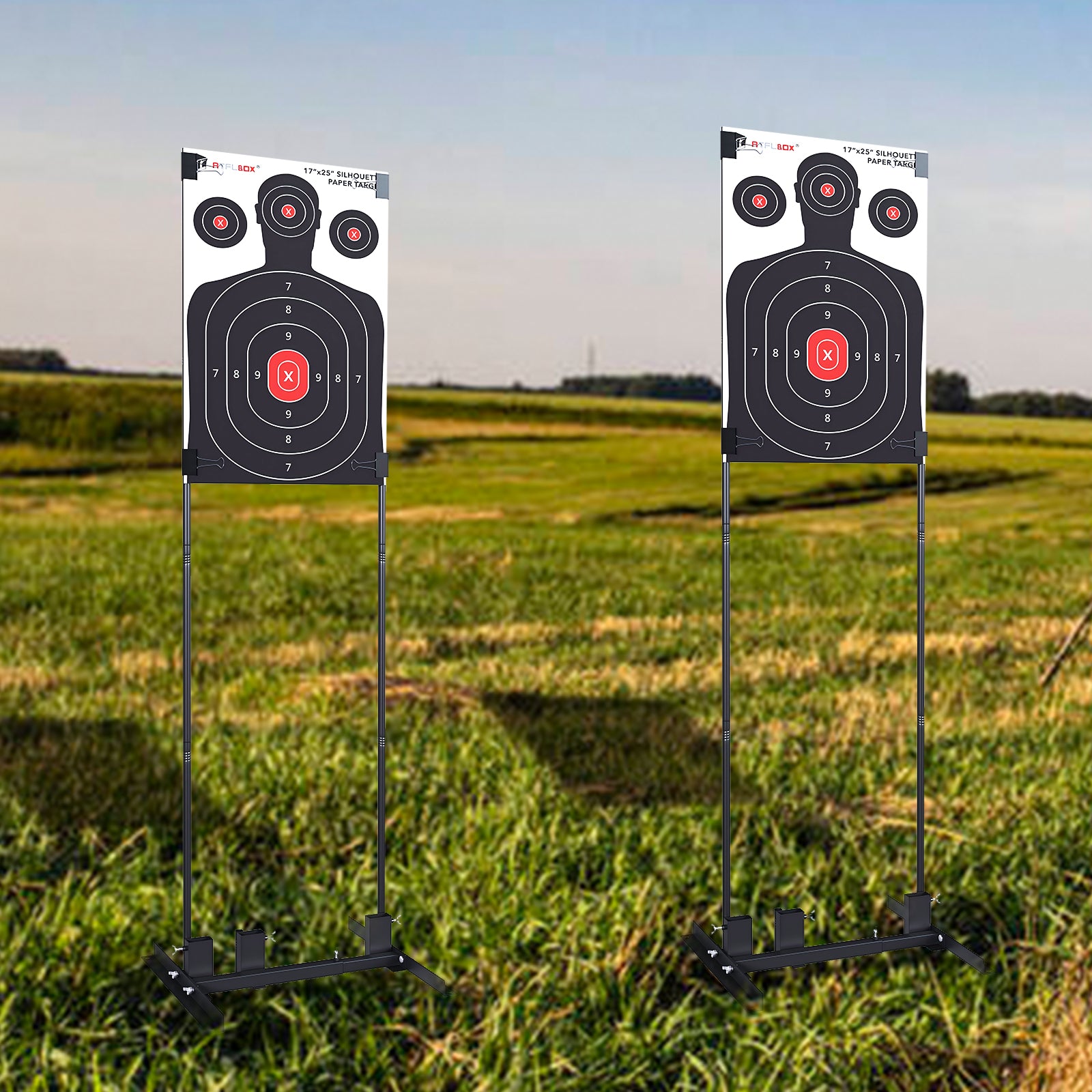 - INNOVATIVE DESIGN: Get all the accessories you need for our shooting target stand without the extra 1×2 board. Instead of boards, we've substituted metal tube for adultsnd and included 10 pieces of 17" x 25" shooting paper targets that you can set up and use the first time you receive them. In addition, you can cut open the box and use it as a cardboard silhouette target.